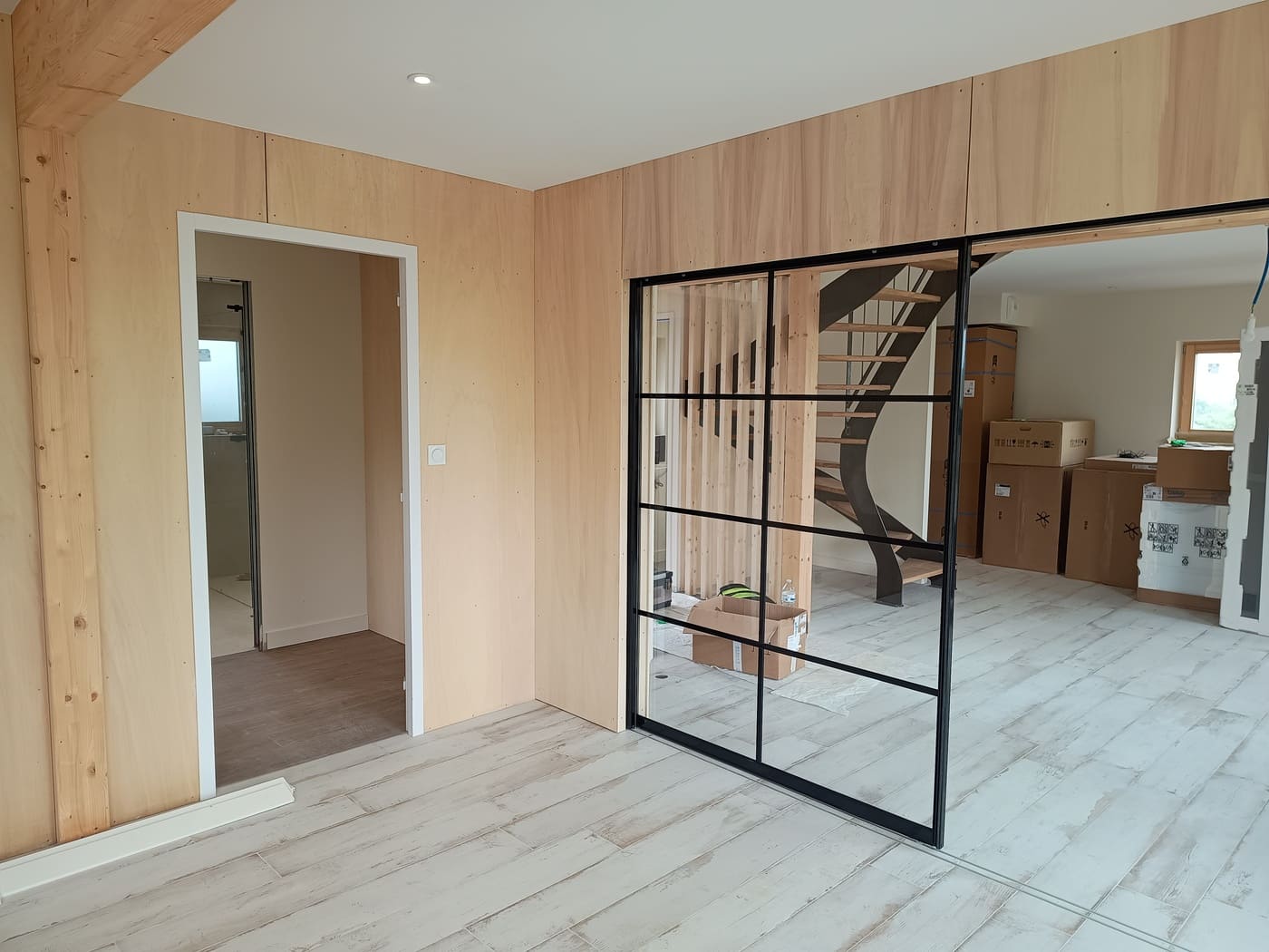 Nous adaptons le choix des matériaux suivant leurs caractéristiques, les souhaits esthétiques et les contraintes liées au bâti. Notre SCOP pose différents types de parements intérieurs tel que le fermacell, les plaques de plâtre, le lambris bois et le contre-plaqué de différentes essences. En privilégiant les essences naturelles non traitées, nous concevons des intérieurs sains, chaleureux et durables.