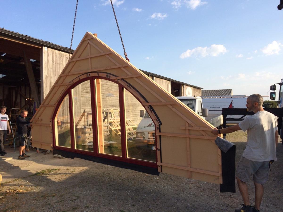 L’ossature bois en Douglas, choisie pour sa légèreté et sa robustesse, constitue la base de cette réalisation. Le bois permet d’allier confort thermique et esthétique chaleureuse, en parfaite cohérence avec les principes de l’écohabitat.