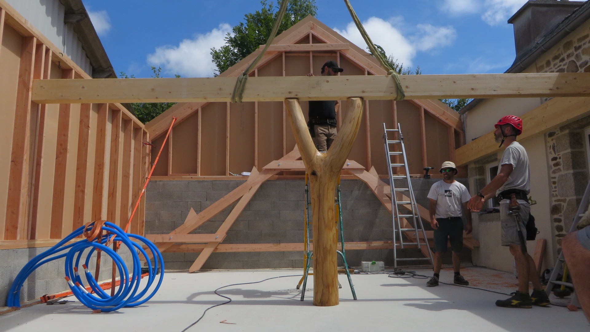 Nos clients ont réalisés eux même l’isolation et l’aménagement intérieur de leur extension ainsi que le poteau en chêne que l’on peut voir sur les photos.